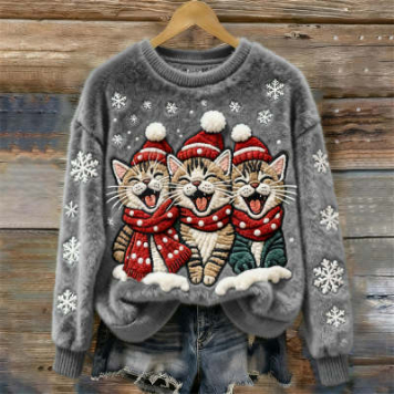 3D Digital Print Pattern Christmas Women's Round Neck Sweatshirt